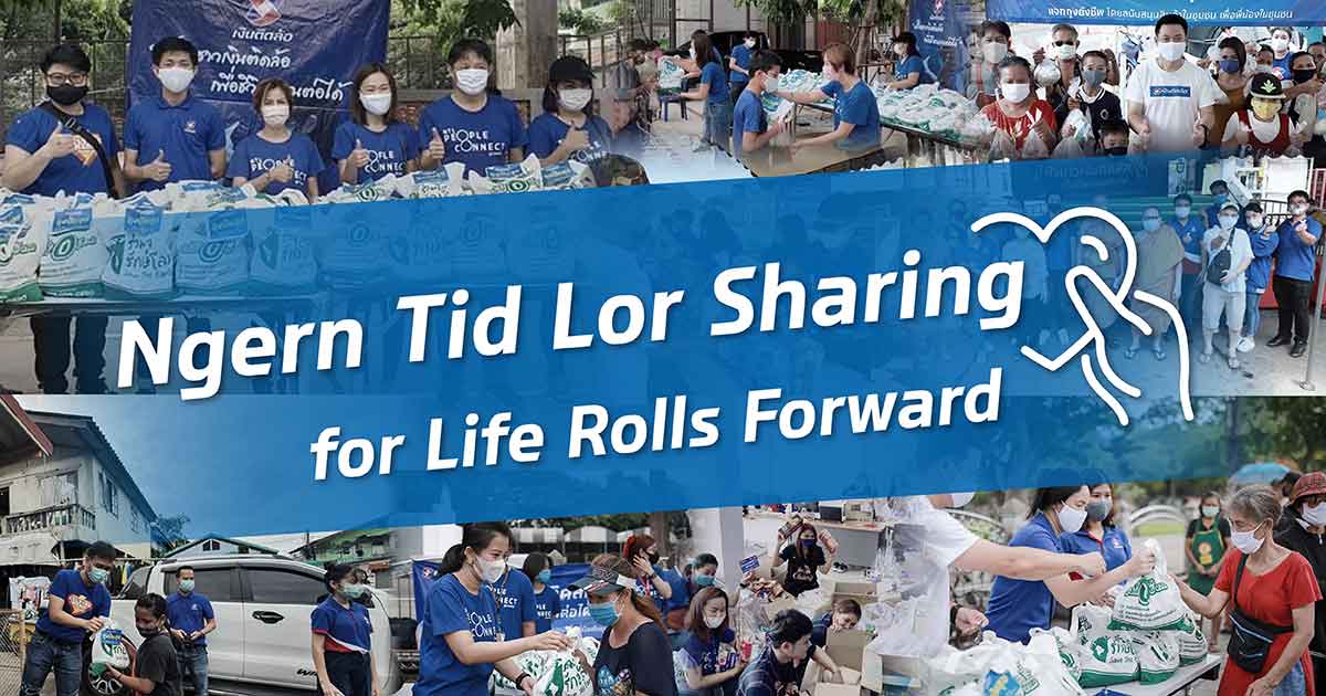 During the COVID-19 crisis, Ngern Tid Lor has once again mobilized its manpower under the Ngern Tid Lor Sharing for Life Rolls Forward project to provide short-term and long-term aids to people affected by COVID-19, following the previous Urgent Missions for Life Rolls Forward to assist and advise customers and the general public in registering for government relief measures, and act to as a middleman recruiting people affected by COVID-19.