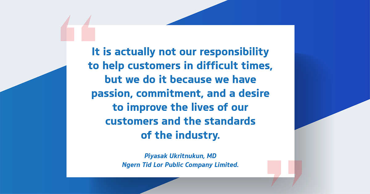 As a leader of the organization, Mr. Piyasak reassured more than 6,000 employees of Ngern Tid Lor about the company’s situation and business:“Everyone can rest assured because our company’s situation right now is very stable. Of course, business can be up and down due to volatile economic conditions, but I believe that Ngern Tid Lor will continue being a strong leader in the vehicle title loan market, committed to helping grassroots people access to fair and transparent financial services.
