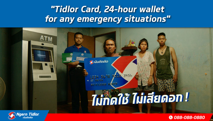 “Ngern Tidlor” managed by Ngern Tid Lor Public Company Limited, or TIDLOR, released “Tidlor Card, 24-hour wallet for any emergency situations” commercial to convey the benefits of “Tidlor Card” revolving cash card with approved credit balance in relation to vehicle title loan.