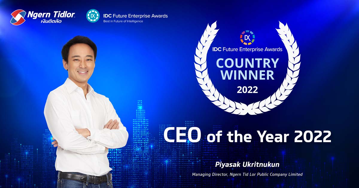 The CEO of the Year award from IDC Future Enterprise Awards 2022 screened winners from highly-qualified organisations in various industries in Southeast Asia. The award is another source of pride for Ngern Tid Lor as it affirms its vision driving the organisation forward to the digital era with confidence. It accomplishes this through an organisational culture where employees are encouraged to take self-development and lead changes, reflecting Ngern Tid Lor as the organisation open for new learning and creating new developments. The employees are valued as the key-driving element for Ngern Tid Lor to move forward alongside the company’s technology development. In so doing, it is able to provide opportunities for customers to access legitimate and transparent financial resources where inequality is bridged for the public to gain the enhanced quality of life with sustainability.