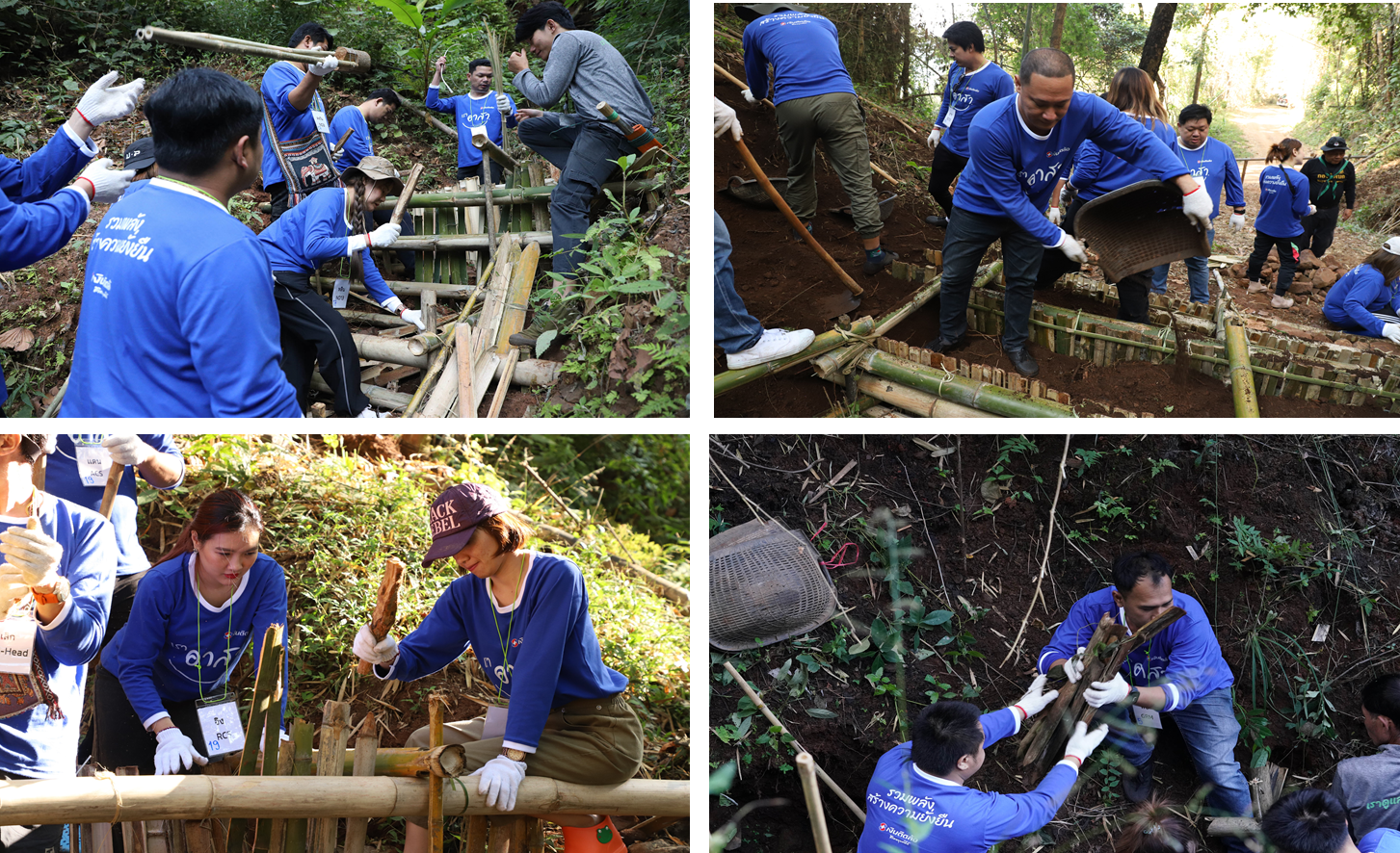 และที่ขาดไม่ได้ก็คือกิจกรรมร่วมกันสร้างฝายชะลอน้ำ ซึ่งนอกจากจะช่วยสร้างความชุ่มชื้นให้กับแหล่งต้นน้ำบนดอยตุง ยังช่วยเติมมิตรภาพดีๆ ระหว่างการสร้างฝายให้กับเหล่าผู้นำชาวเงินติดล้อไปด้วยพร้อมกัน