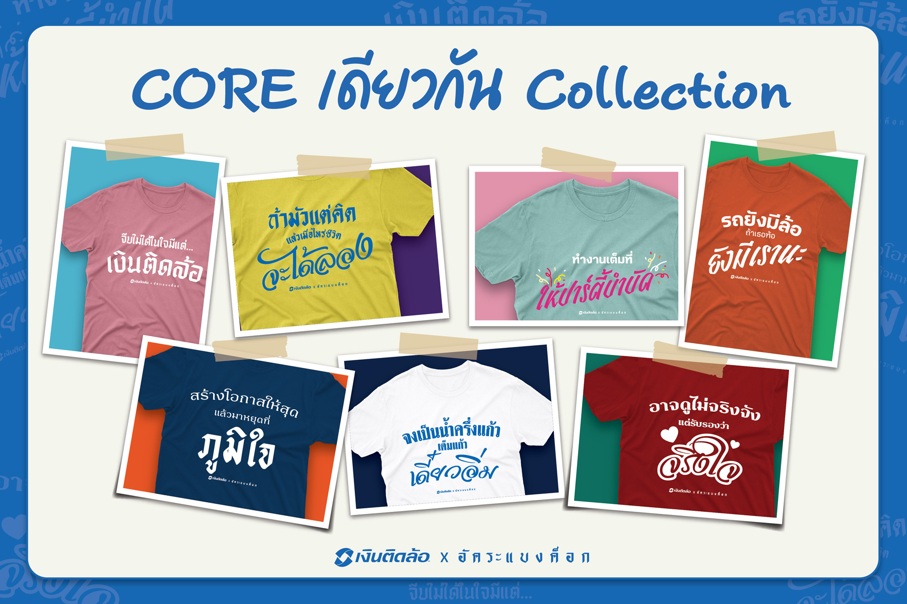 เมื่อค่านิยมองค์กรของ ‘เงินติดล้อ’ ไม่เคยอยู่แค่บนกำแพง แต่อยู่ในชีวิตประจำวันของชาวเงินติดล้อทุกคนรวมถึงบนดีไซน์ของเสื้อ ‘Core เดียวกัน Collection’ ที่เป็นการจับมือกันครั้งแรกระหว่างเงินติดล้อ X อัคระแบงค็อก แบรนด์ดีไซน์เนอร์คนไทย