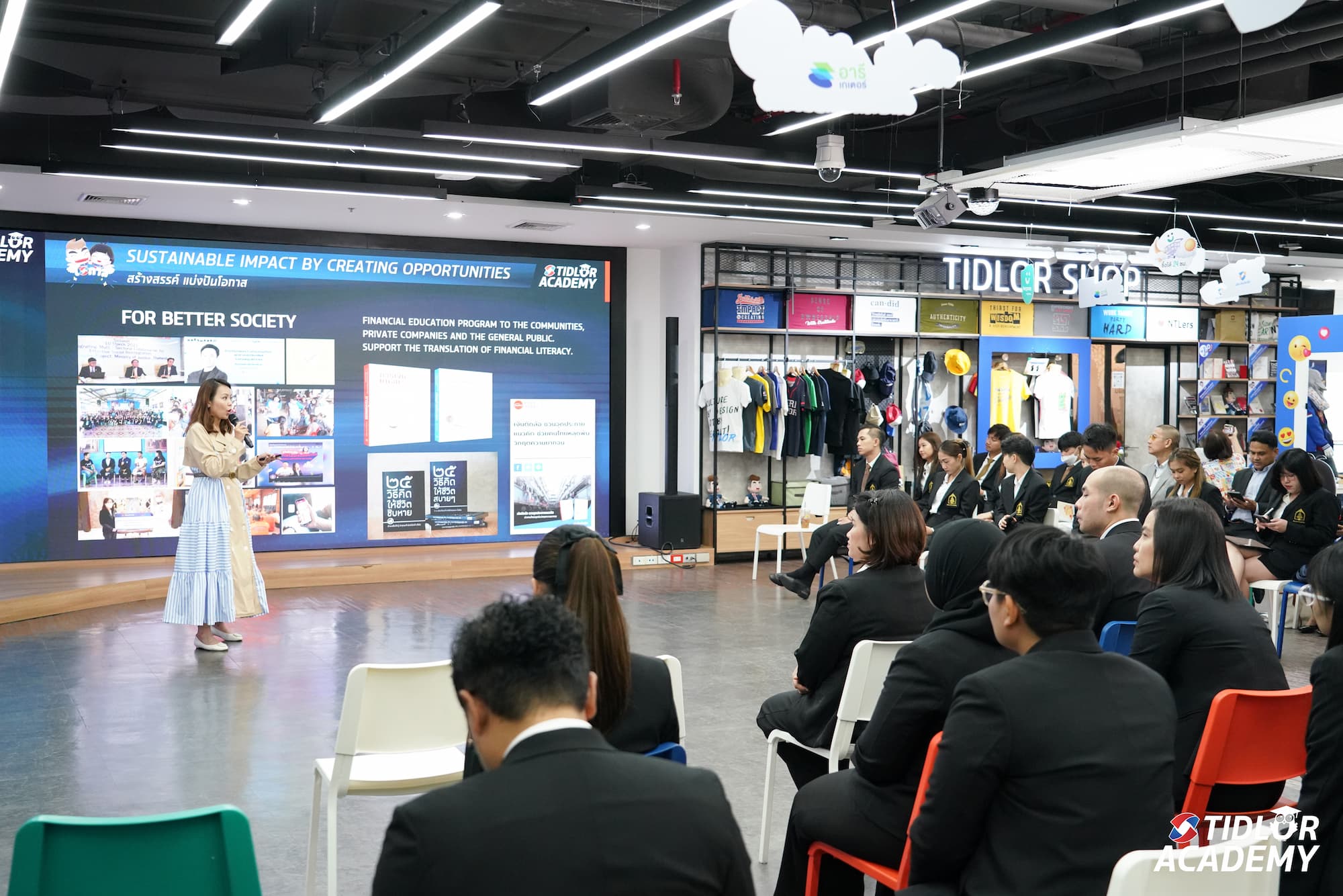 Tidlor Academy ศูนย์การเรียนรู้ของ บริษัท เงินติดล้อ จำกัด (มหาชน) บริษัทในกลุ่ม Tidlor Holdings (TIDLOR) โดย คุณกาญจน์ณัฐ เฉลิมจุฬามณี ผู้บริหารศูนย์การเรียนรู้เงินติดล้อ (Tidlor Academy) นำทีมงานต้อนรับนักศึกษาปริญญาโท โครงการศึกษาภาคพิเศษ หลักสูตรศิลปศาสตรมหาบัณฑิต สาขาวิชาการพัฒนาทรัพยากรมนุษย์ คณะพัฒนาทรัพยากรมนุษย์ มหาวิทยาลัยรามคำแหง จำนวนทั้งหมด 35 ท่าน เข้าร่วมกิจกรรม “TIDLOR Culture Wow” เพื่อแนะนำ และแลกเปลี่ยนแนวคิด วิธีการสร้างค่านิยมและวัฒนธรรมองค์กรที่สามารถนำไปใช้ได้จริง พร้อมเยี่ยมชมแผนกต่าง ๆ อาทิ ฝ่ายวิเคราะห์และพัฒนา (Analytics & Development) ฝ่ายส่งเสริมการเรียนรู้ด้านการเงิน (Financial Education หรือ FIN-ED) และฝ่ายการตลาดและพัฒนาธุรกิจ (Marketing & Business Development) นอกจากนี้ ยังได้พูดคุยถาม-ตอบอย่างใกล้ชิดกับคณะผู้บริหารและทีม Culture Gangster เพื่อเปิดมุมมองการสร้างวัฒนธรรมองค์กรให้แข็งแกร่งและยั่งยืน สู่โลกการทำงานอย่างมีประสิทธิภาพมากยิ่งขึ้น กิจกรรมดังกล่าวจัดขึ้น ณ สำนักงานใหญ่ บมจ. เงินติดล้อ อาคารอารีย์ ฮิลล์ เมื่อเร็วๆ นี้