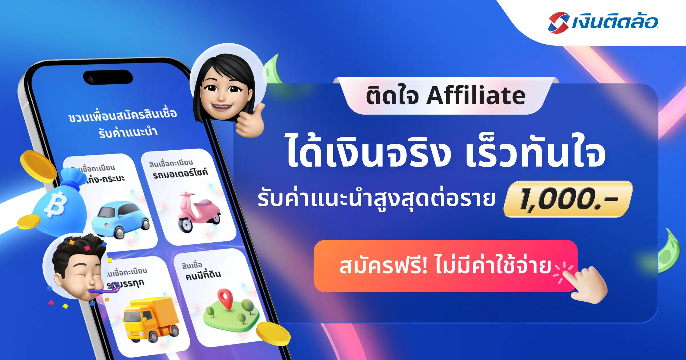แนะนำเพื่อนมาขอสินเชื่อกับเงินติดล้อ รับค่าแนะนำต่อคันสูงสุด 1,000 บาท